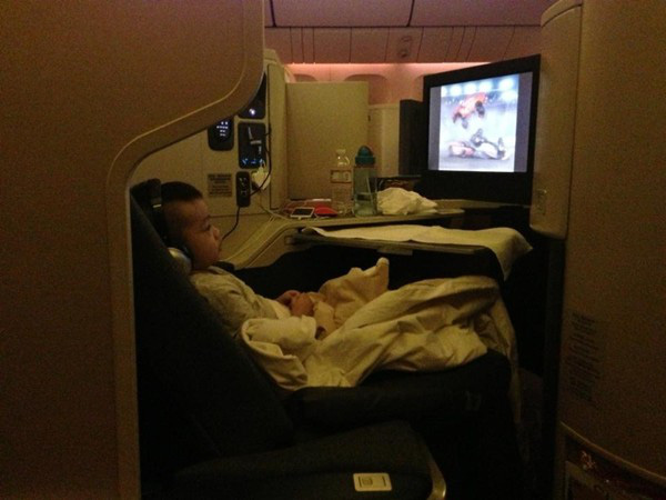 | Cậu bé được đi du lịch khắp nơi và di chuyển với ghế hạng sang trên máy bay. Ảnh internet |