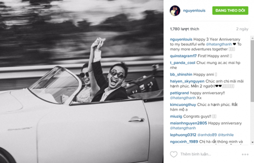 | Louis Nguyễn đăng tải hình ảnh hạnh phúc bên Tăng Thanh Hà nhân kỉ niệm 3 năm ngày cưới. Ảnh: instagram Louis Nguyễn |