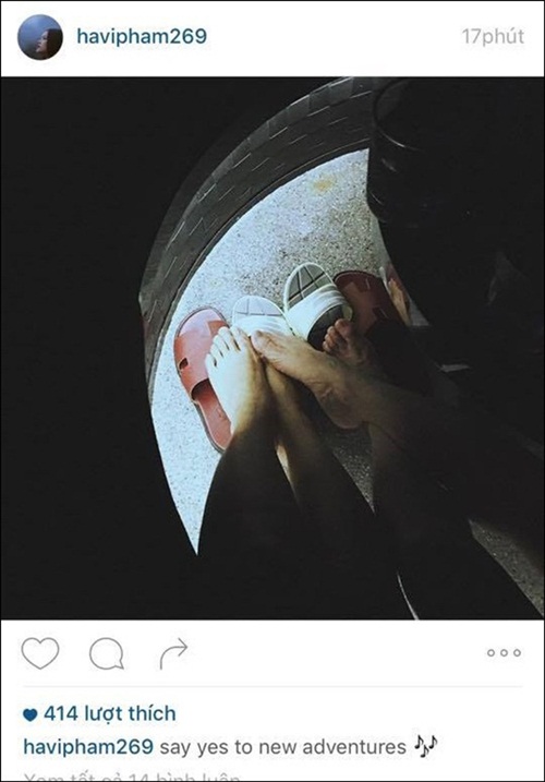 Cường Đô la viết: “Brand name or not... It is still just "dép” that you wear” (Tạm dịch: Có thương hiệu hay không, nó vẫn chỉ là dép mà bạn đi). Chỉ ít phút sau đó, Hạ Vi cũng đăng tải hình ảnh như vậy và chia sẻ: “Say yes to new adventures” (Tạm dịch: Nói đồng ý với cuộc phiêu lưu mới).