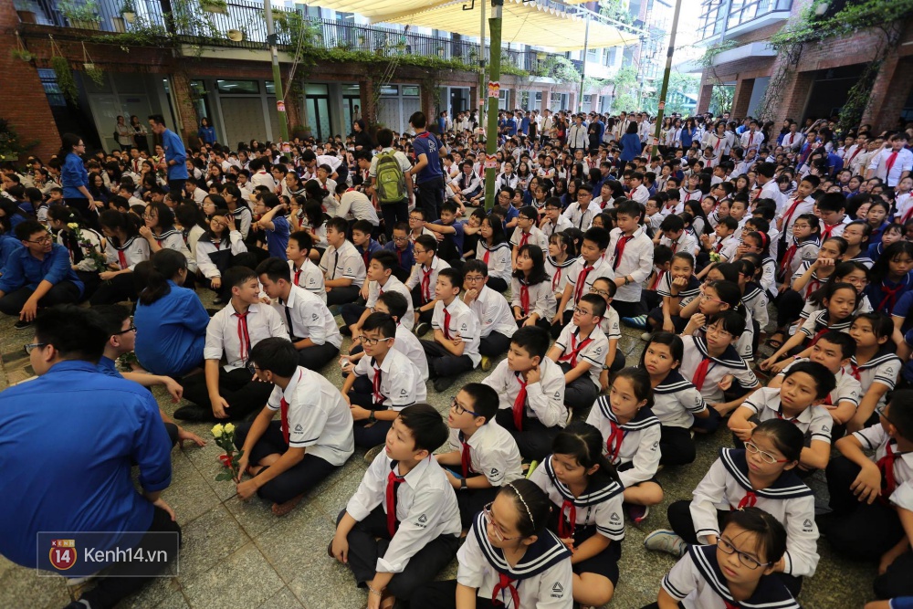 Cũng trong buổi lễ, các cựu học sinh của trường đã khiến những người chứng kiến không thể ngưng xúc động khi vừa khóc, vừa hát ca khúc "Bài học đầu tiên" để tiễn biệt người thầy đáng kính.