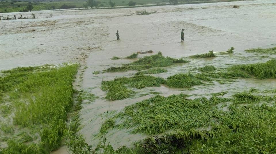 | Một số tuyến đường bị ngập nước cô lập hàng trăm người dân. |