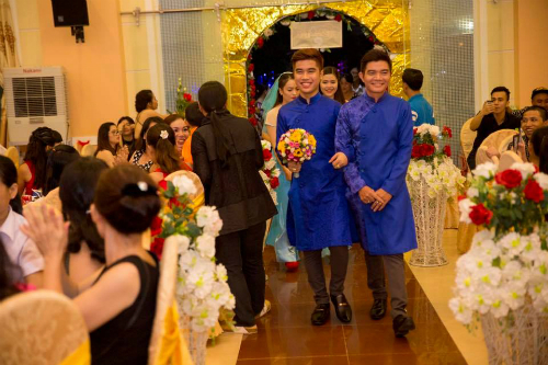 Đám cưới có sự tham gia của đông đảo bạn bè và những người thân. Trước đó ,Vũ Phong và Tuấn Phong tình cờ quen biết nhau qua Facebook. Sau những lần trò chuyện, tình yêu trong họ lớn dần lên.