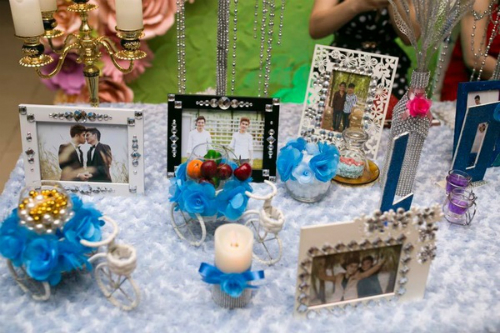 | Những bức ảnh được trang trí trong lễ cưới của cặp đôi. Ảnh: Vnexpress |
