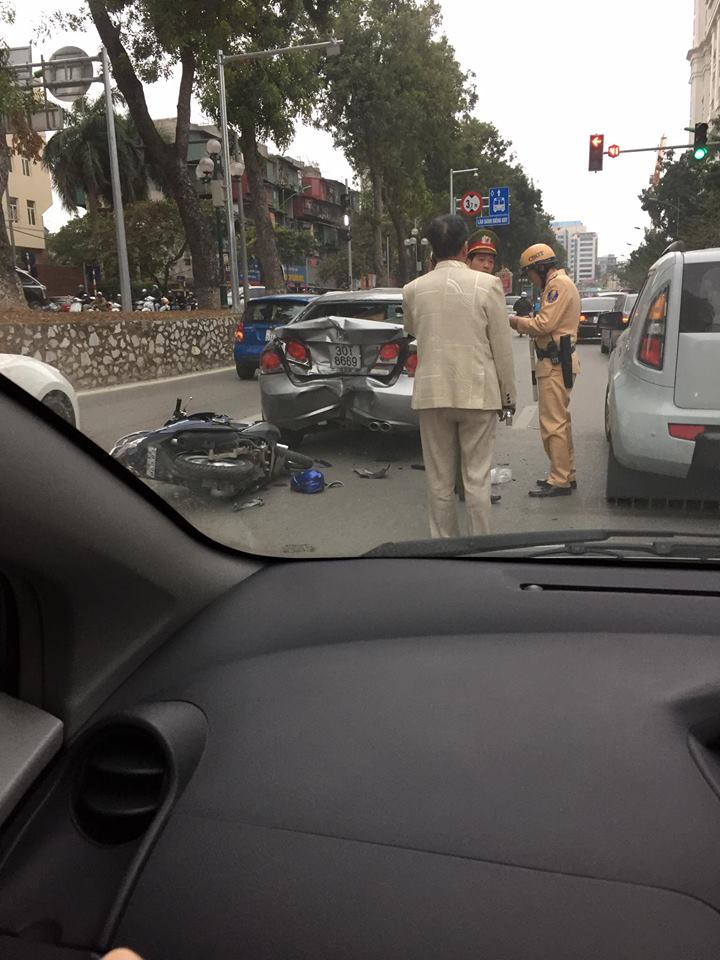Vào thời điểm trên, xe ô tô Honda Civic mang biển kiểm soát 30T-866.. lưu thông hướng Giảng Võ về Láng Hạ. Khi tới ngã 3 Giảng Võ- Trần Huy Liệu, ô tô dừng chờ đèn đỏ thì bất ngờ bị nam thanh niên điều khiển xe Air Blade chạy tốc độ cao ở phía sau đâm mạnh vào đuôi chiếc Honda Civic.