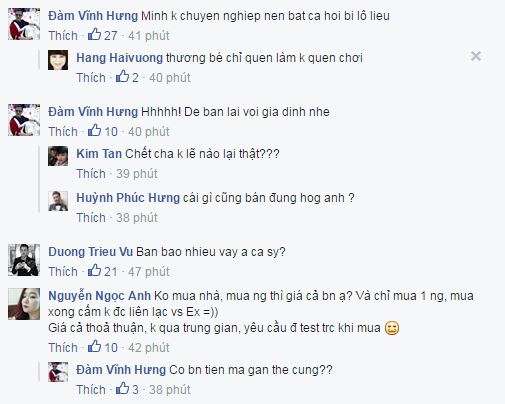 | Nhiều bạn bè và người hâm mộ hào hứng vào bình luận sau những dòng trạng thái của Đàm Vĩnh Hưng. |