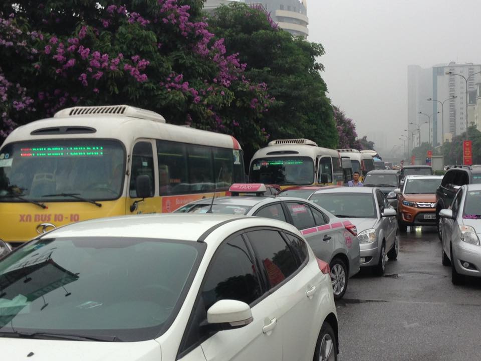 Sau trận mưa đêm qua, sáng ngày 25/5, trên khắp các tuyến đường tại Hà Nội xảy ra tình trạng ngập diện rộng. Trên các tuyến đường từ Phạm Hùng, Tôn Thất Thuyết, Trần Thái Tông, Nguyễn Thành Thái, hàng trăm loại phương tiện ô tô, xe máy chết cứng tại đường không thể di chuyển được.