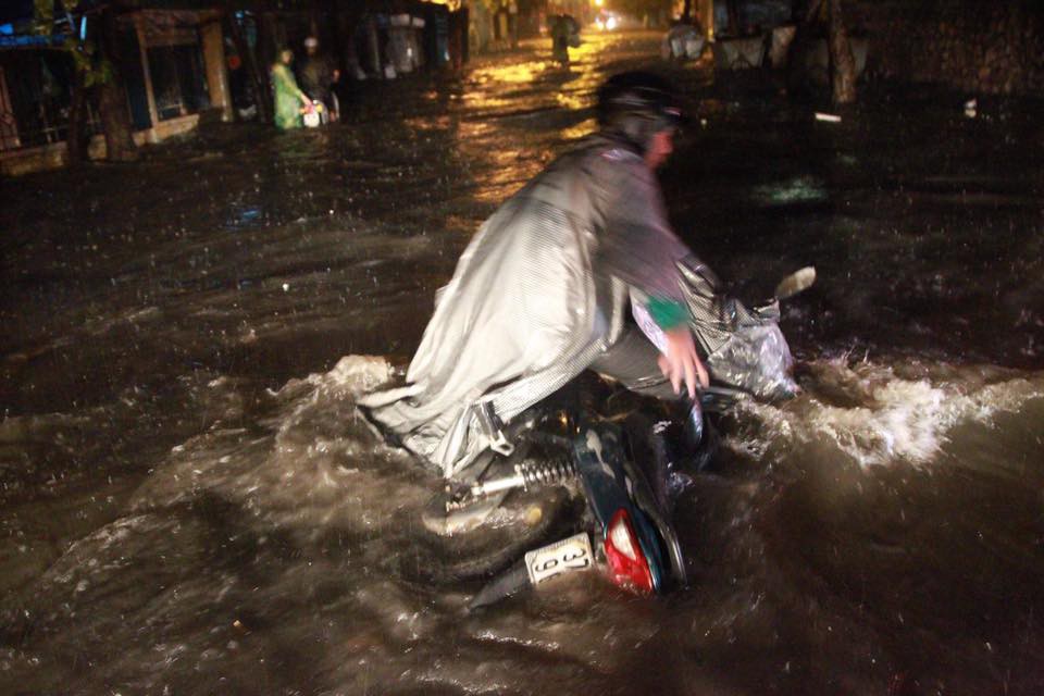 20h50: Phóng viên Vũ Dương thông tin khu vực đường Trần Bình nước ngập khoảng 30cm. Người dân khu vực cho biết mưa lớn đến khoảng 19h thì nước bắt đầu tràn từ ngoài đường vào nhà dân. Vừa chống nước tràn vào nhà, người dân nơi đây vừa dùng các đồ vật để cảnh báo cho các phương tiện qua lại, tránh sự cố đáng tiếc.