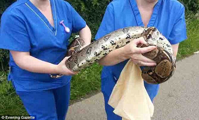 Y tá thú y Debbie Rowley và Karen Taylor sau đó đã bắt con vật này lại. Họ cho rằng đây là một con rắn cái và đã đưa nó đi kiểm tra.