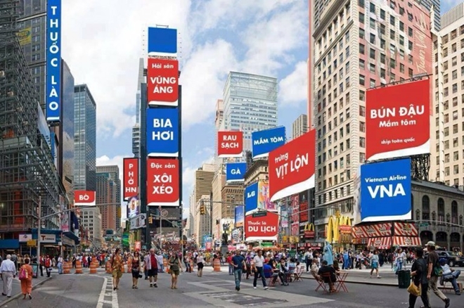 Người dùng mạng xã hội Facebook đua nhau thay đổi ảnh bìa theo mẫu biển quảng cáo trên đường Lê Trọng Tấn (Hà Nội). |