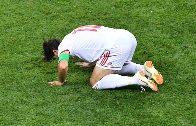 Ngay khi trọng tài thổi còi kết thúc trận hòa 1-1 với Bồ Đào Nha, các cầu thủ Iran đã đổ gục xuống sân, bật khóc vì tiếc nuối.