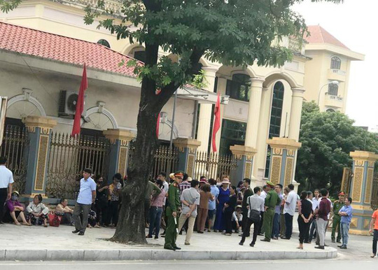 Người dân đến trụ sở UBND tỉnh Ninh Bình mong đối thoại với lãnh đạo tỉnh. Ảnh: Người lao động |