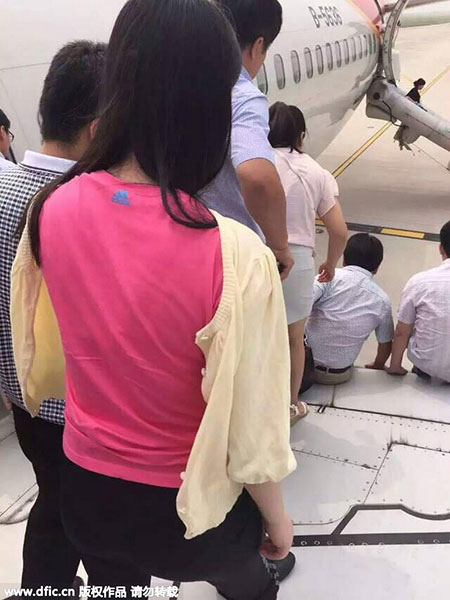 Hành khách được sơ tán khỏi máy bay, song một số người đã bị thương vì nhảy xuống từ cửa máy bay do quá hoảng loạn.