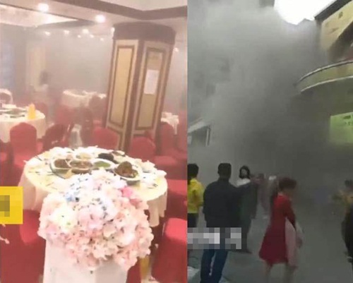 Sự việc xảy ra vào hôm 30/9, một đôi vợ chồng đang tổ chức hôn lễ ở nhà hàng thì khói đen bất ngờ bốc lên dày đặc. Được biết, lễ đường nằm ở tầng 2 và đám cháy phát sinh từ căn bếp của nhà hàng nằm ở tầng 1.