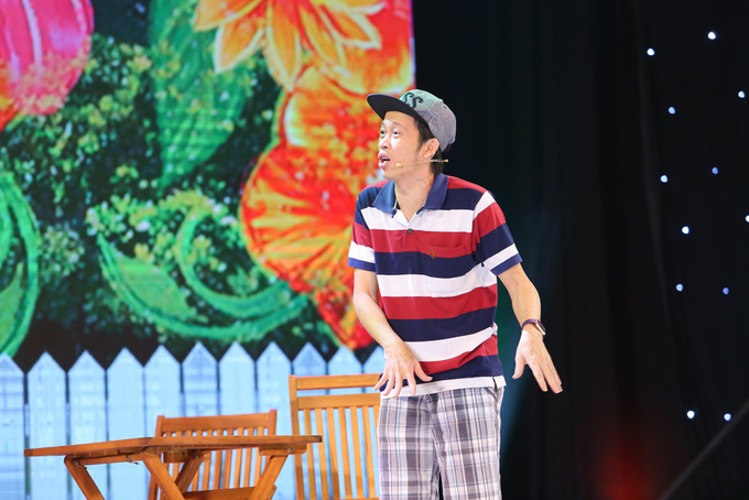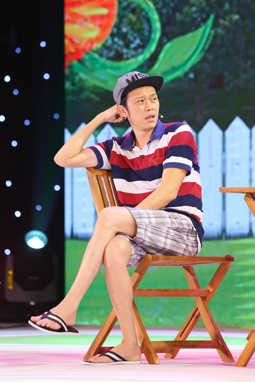| Đến tham gia buổi tổng duyệt, danh hài sinh năm 1969 vẫn giữ phong cách giản dị thường thấy với áo phông, quần đùi và dép tông. |