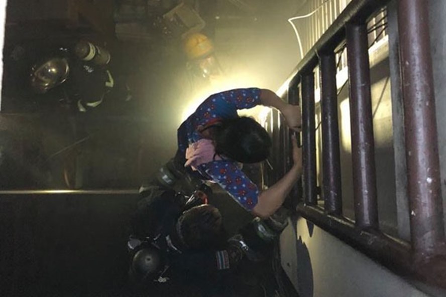 Cứu hộ người dân ra khỏi tòa chung cư bị cháy. Ảnh: Bangkok Post |