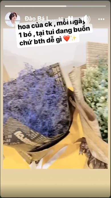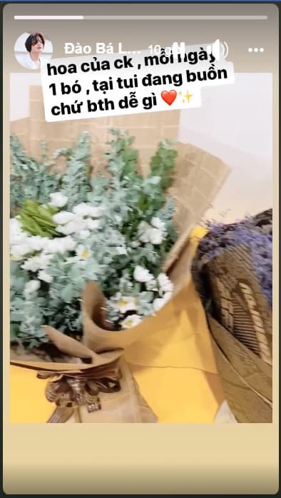 Giọng ca 'Sẽ thôi mong chờ' đăng tải một loạt những hình ảnh hoa được tăng cùng dòng trạng thái đầy giận dỗi nũng nịu ' Hoa của chồng, mỗi ngày một bó, tại tui đang giận chứ bình thường dễ gì được'.