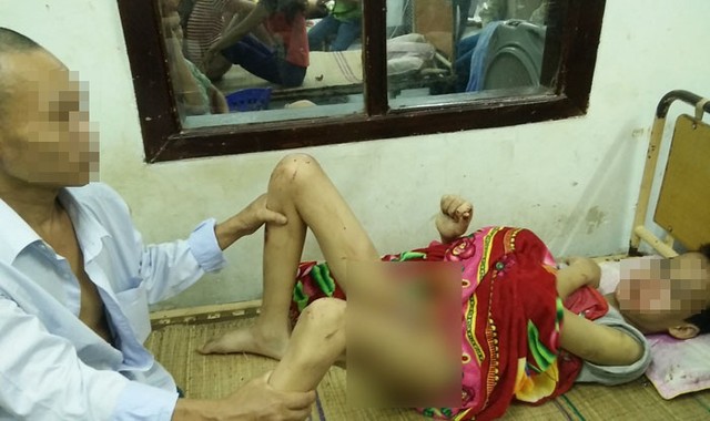 Ngồi chăm sóc con tại bệnh viện, anh Nguyễn Văn Sỹ và chị Trần Thị Giang vẫn chưa hết bàng hoàng khi phát hiện con mình bị như vậy. Theo anh Sỹ, vợ chồng anh sinh được 3 người con, Tú là con trai đầu. Từ lúc sinh ra cháu đã bị thiệt thòi khi câm bẩm sinh, đầu óc kém phát triển.