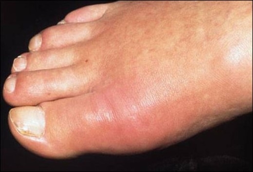 | Ngón chân sưng to là một trong những dấu hiệu nhận biết bệnh gút. Ảnh nguồn: Internet |