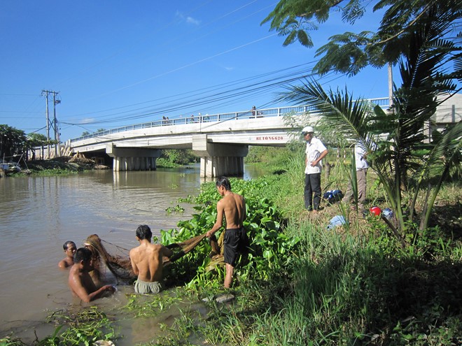 Đến khoảng 8h cùng ngày, thi thể nữ sinh C. đã được tìm thấy cách cầu Kênh 14 vài trăm mét.