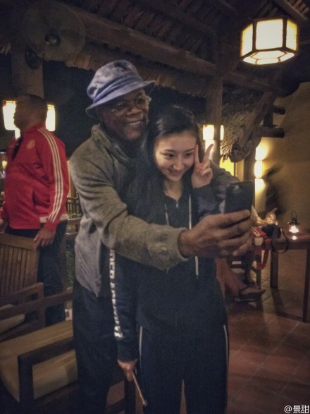 Nữ diễn viên chú thích về hình ảnh cô chụp cùng Samuel L. Jackson: "Tôi đặc biệt yêu thích phim của anh ấy nên cảm thấy vô cùng vinh hạnh khi được hợp tác lần này. Tôi học được rất nhiều". Được biết, trong phim, Cảnh Điềm sẽ thủ vai một cô gái tên San. |