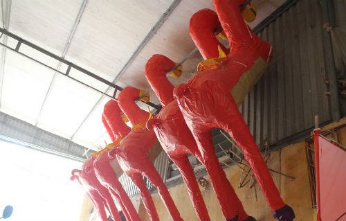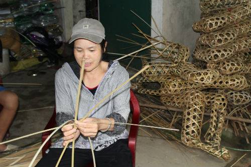 Mỗi một gia đình ở đây làm vàng mã theo từng công đoạn từ chuẩn bị làm cốt ngựa, voi, làm khung tiến sỹ giấy, thiên lôi la sát... cho đến dán giấy, làm vàng mã, làm đai, mũ, quần áo.