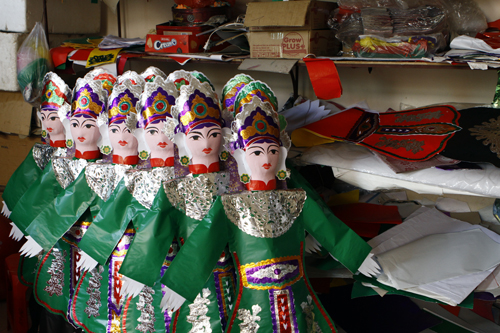 Những cốt ngựa, voi bày dọc những con ngõ trong làng, chuẩn bị làm đồ cúng cho các gia đình trong "tháng cô hồn".