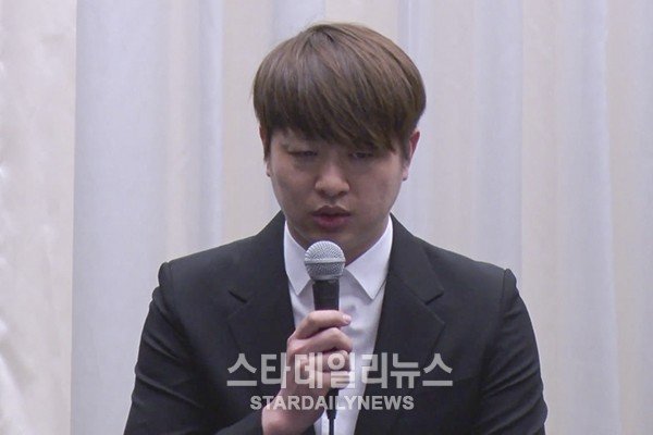 | Yoo Sang Moo mở họp báo xin lỗi người hâm mộ. |