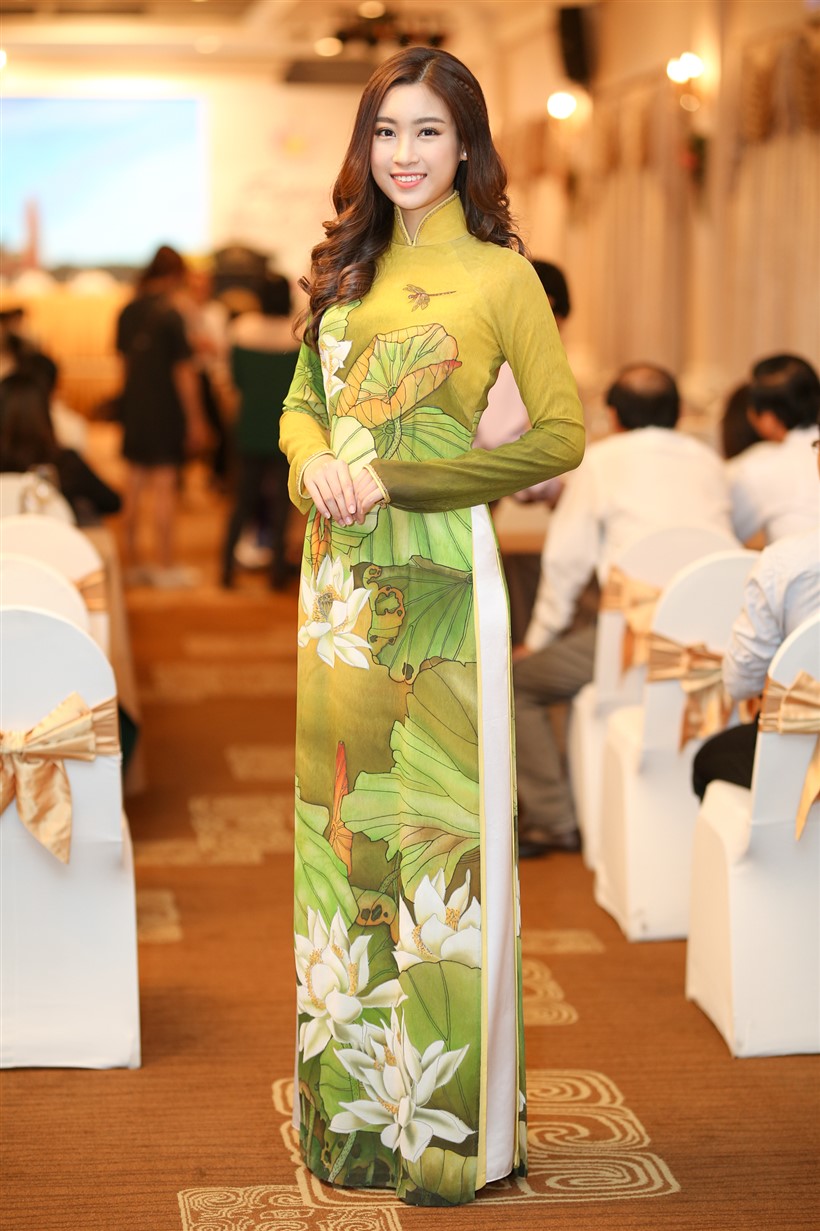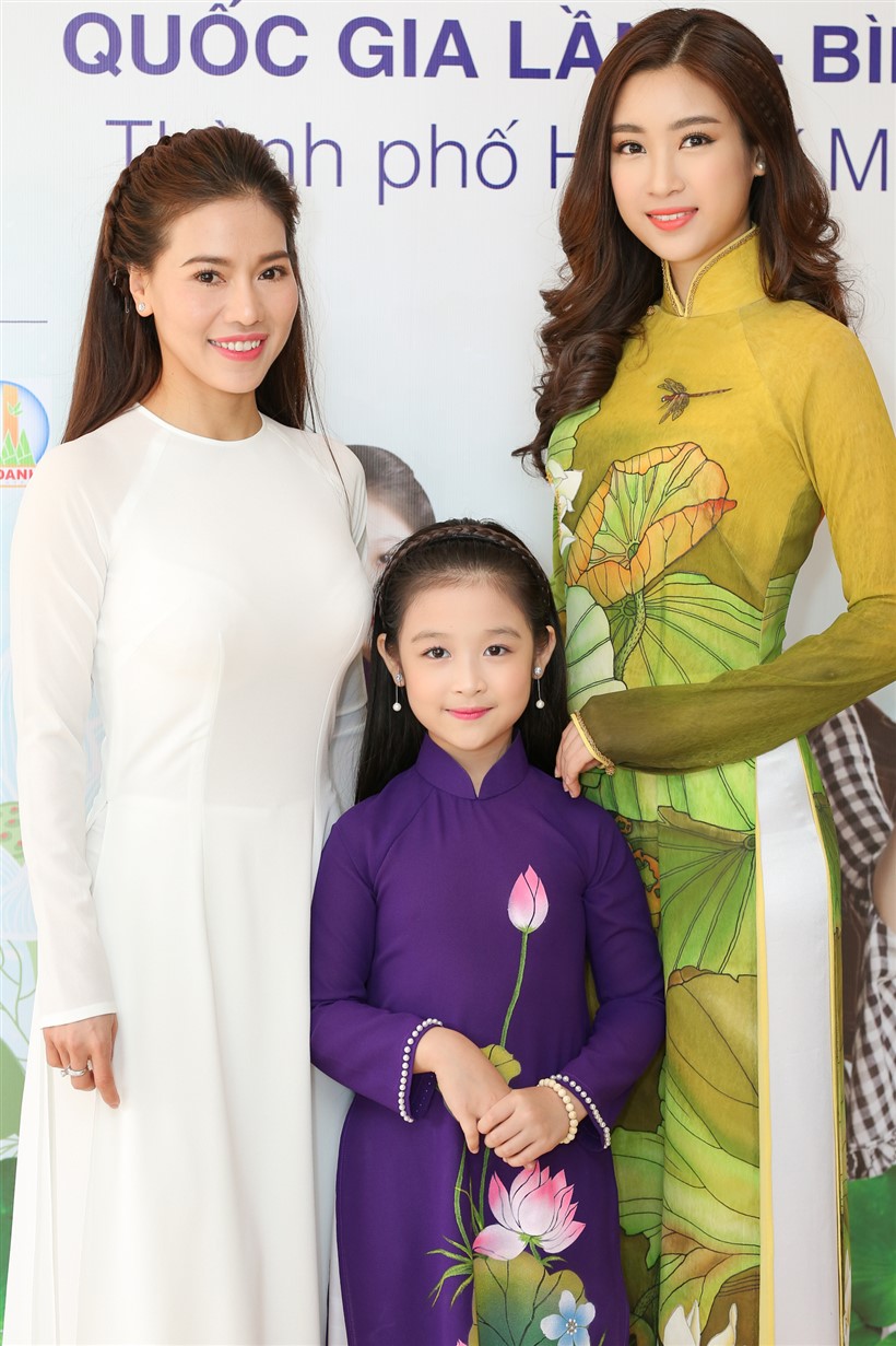 | Tại buổi họp báo sáng nay còn có sự xuất hiện của Hoa hậu Việt Nam 2016 Đỗ Mỹ Linh và nghệ sĩ nhí Bảo Ngọc. Người đẹp sinh năm 1996 duyên dáng trong tà áo dài của Nhà thiết kế Sỹ Hoàng. |