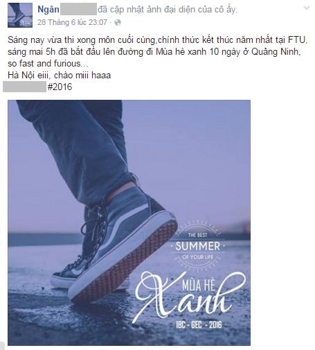 Trên Facebook cá nhân, trước ngày lên đường đi tình nguyện, em Hải viết: "Những ngày này ở Hà Nội như nóng hơn bao giờ hết. Bởi cái nắng chói chang len lỏi qua từng cánh hoa phượng cháy đỏ rực, hay vì mỗi người đang thấy trong lòng rạo rực một ngọn lửa vô hình giục giã bước chân".