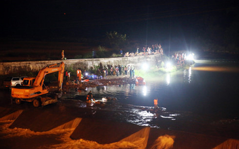 Các lực lượng trắng đêm tìm kiếm thi thể 3 nữ sinh bị lũ cuốn trôi. Ảnh: VOV |