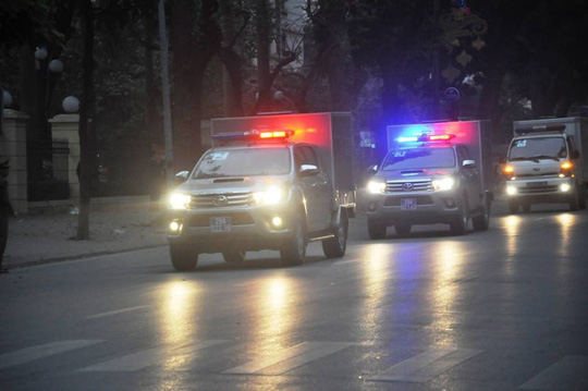 Vào khoảng 6h50 phút cùng ngày, hơn 10 thùng xe đặc chủng đã đi thẳng vào TAND TP Hà Nội.