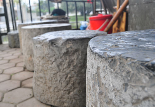 Thấy tiếc những chiếc cối đá, cách đây hơn chục năm, vụ Chính đã sử dụng chúng làm ghế cho quán nước của mình.