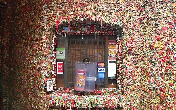 Một bức tường độc đáo nằm cuối con hẻm Post, khu chợ Pike Place đã trở thành điểm thăm quan có tiếng tại thành phố Seattle từ những năm đầu thập niên 90.