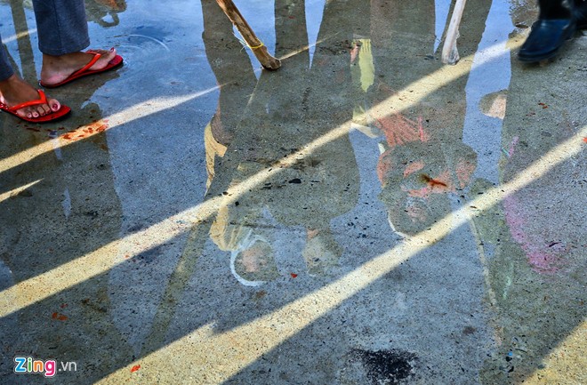 Không có dụng cụ hỗ trợ, phụ nữ ở Thủy Đầm phải dùng tay để lăn cá lên trên gần chục chiếc đòn gánh.