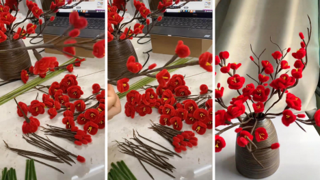 Cách làm hoa đào bằng kẽm nhung trông như thật đón Tết Nguyên đán 2024