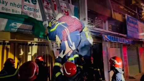 Hoan hô Cảnh sát PCCC TP.HCM với pha giải cứu ngoạn mục cụ bà và cô gái giữa biển lửa