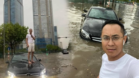 Người trong cuộc đã có những chia sẻ thú vị về khoảnh khắc ngồi trên nắp capo Mercedes lênh đênh trong vùng nước ngập ở Hà Nội.