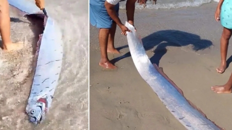 Được mệnh danh là "cá động đất", việc con cá mái chèo này dạt vào bờ biển khiến người dân vô cùng hoang mang.