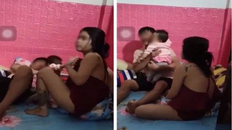 Đến phòng trọ gặp bồ nhí còn bế con theo, vợ đến bế con về còn bị chồng vũ phu đánh đập