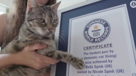 Bella, một cô mèo 14 tuổi đến từ Huntingdon, Vương quốc Anh, đã giành được Kỷ lục Guinness về tiếng kêu to nhất thế giới của mèo nhà, với âm thanh ồn ào đo được là 54,59 decibel.