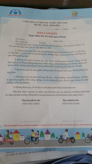 “Việc thực hiện cam kết thực hiện tốt ATGT chủ yếu chú trọng giáo dục ý thức cho học sinh, không đặt nặng vấn đề phải ký văn bản hay chịu trách nhiệm trước pháp luật đối với học sinh lớp 1”, ông Chương phân trần.