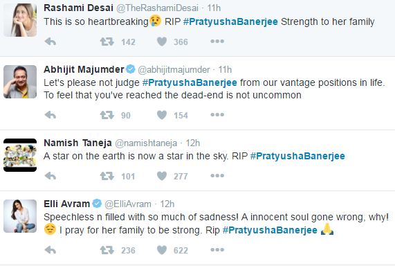 | Các fan đau buồn chia sẻ sau tin Pratyusha qua đời |