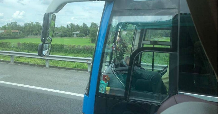 Từ sáng 27/6, mạng xã hội lan truyền đoạn video ghi lại hình ảnh tài xế bất chấp nguy hiểm, vắt tay sau đầu và dùng chân lái xe. Xe khách này mang biển số tỉnh Cà Mau, có dán logo Tuấn Hiệp di chuyển trên cao tốc Trung Lương – TP. HCM.