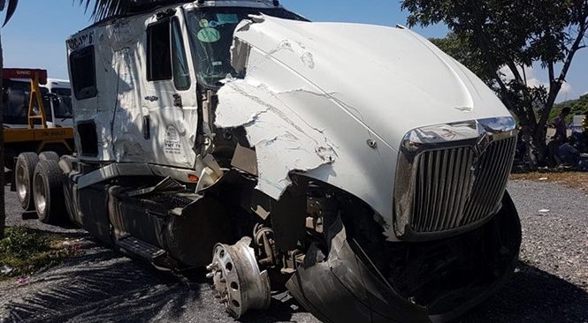 | Xe đầu kéo hư hỏng sau tai nạn. Ảnh: Thanh Niên |