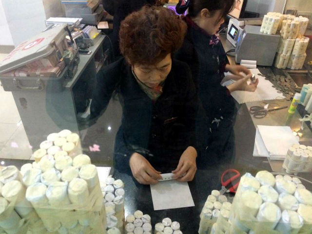 Việc gửi một số lượng tiền xu lớn không hề dễ dàng đối với ngân hàng nhưng lại không phải chuyện hiếm đối với các ngân hàng của Trung Quốc. Tháng trước, một cặp vợ chồng vô gia cư ở Hồ Bắc đã đổi 304 nhân dân tệ ra tiền xu để đi đóng học cho con gái mình.