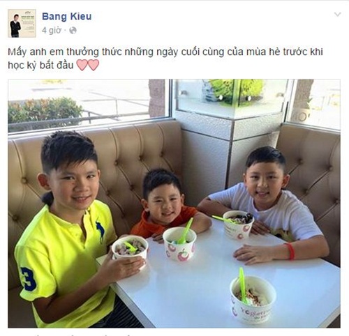 | Bằng Kiều đưa các con đi chơi những ngày cuối hè: "Mấy anh em thưởng thức những ngày cuối cùng của mùa hè trước khi học kỳ bắt đầu". Ảnh: FBNV. |
