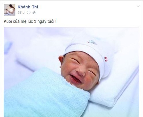 | Khánh Thi khoe ảnh con trai khi mới ba ngày tuổi. Ảnh: FBNV. |