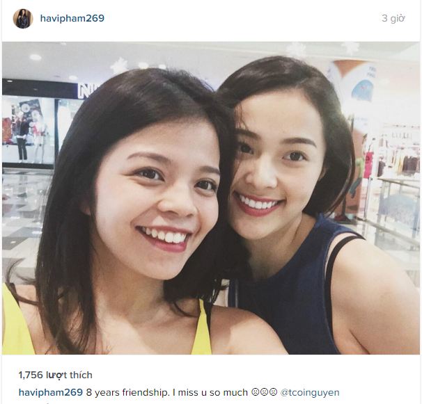 | Hạ Vi tươi tắn bên cô bạn thân 8 năm trong ngày giáng sinh. |