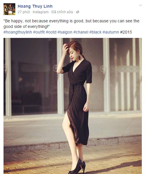 | Hoàng Thùy Linh chia sẻ cảm nhận về hạnh phúc: ""Hạnh phúc, không phải vì tất cả mọi thứ là tốt, nhưng vì anh có thể thấy mặt tốt của tất cả mọi thứ!" Ảnh: FBNV |