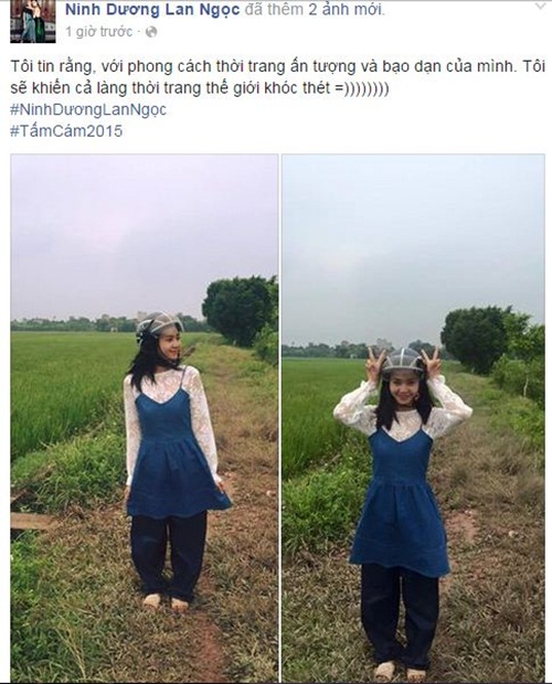 | Ninh Dương Lan Ngọc tạo cho mình phong cách thời trang ấn tượng, có chút khác biệt với người thường: "Tôi tin rằng, với phong cách thời trang ấn tượng và bạo dạn của mình. Tôi sẽ khiến cả làng thời trang thế giới khóc thét". Ảnh: FBNV |